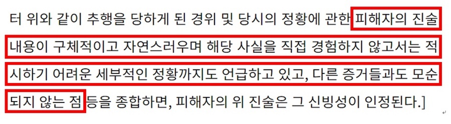 피해자의 일관된 진술이 단 하나의 증거가 돼 판결이 이뤄졌다” 고 주장했고,