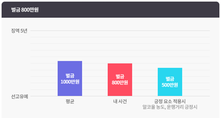 로이어드 시뮬레이션 결과 벌금 800만원의 형량이 예측됩니다.